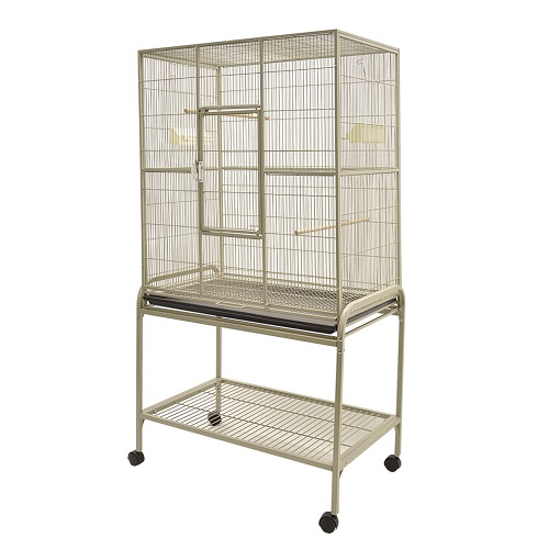 Cage pour oiseaux avec roulettes offrant un espace confortable pour perruches et canaris grâce à ses nombreux accessoires pratiques