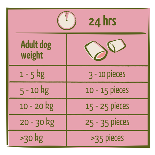Cette friandise contient moins de cinq kilocalories par pièce. Vous l’utilisez comme récompense ou comme petite pause gourmande. Votre chien profite d’un plaisir fondant sans alourdir son apport énergétique.